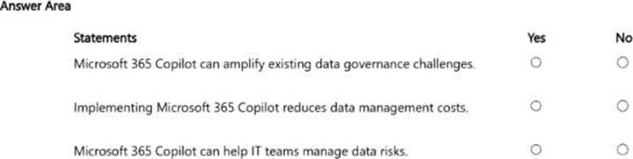 No ― It is not accurate to claim that implementing Copilot inherently reduces data management costs. Adoption often requires up-front investment in data hygiene, sensitivity labeling, retention, permission cleanup, DLP, and change management. Some organizations may realize productivity gains or reduced effort over time, but “reduces costs” is not a guaranteed outcome and depends heavily on the current state of governance, the scale of remediation needed, and how Copilot is rolled out.