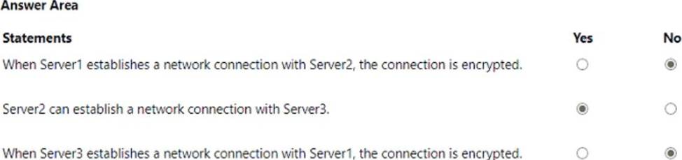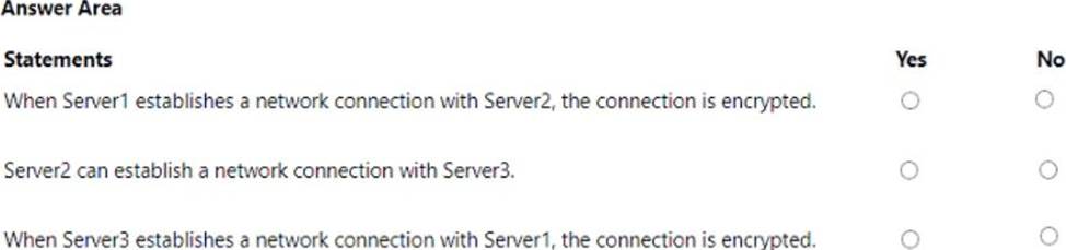 On Server1, Windows Defender Firewall has a connection security rule that has the following settings: