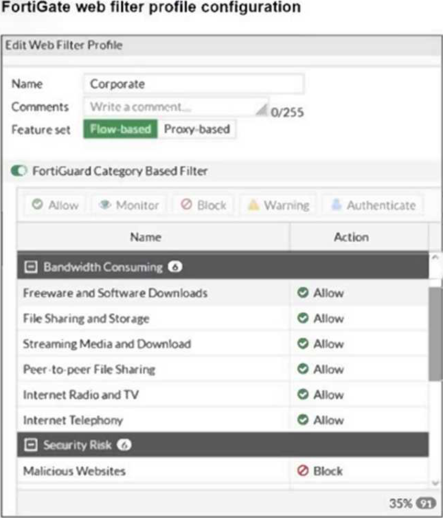 A. In flow-based inspection mode, FortiGate buffers the file, but also simultaneously transmits it to the client.
